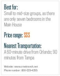 General description: Lazing quietly at the end of a winding path of majestic oak trees draped in Spanish moss, this 9,000-square-foot luxury ranch “Bunk House” on the shores of Central Florida’s Lake Hatchineha is an unforgettable destination that offers the perfect blend of luxurious comfort, time-stalling quietude and exciting outdoor activities. Lush plant life bursts from every angle of this Everglades hideaway, and there’s ample meeting space—albeit non-traditional—both indoors and out for your formal and informal events. Be sure to carve out time for team activities like horseback riding, bass fishing, hiking and the life-affirming rides on the swamp buggy, airboat and pontoon boat—plus much more.