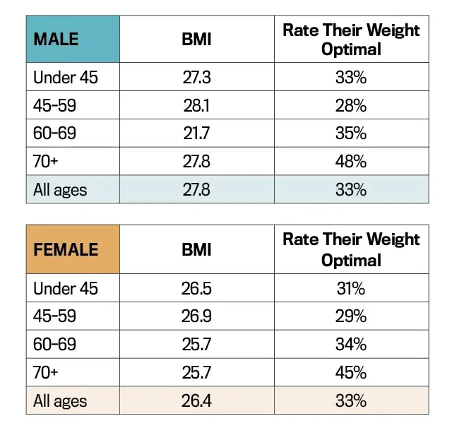 Two-thirds of respondents acknowledge not being at their optimal weight vs. 83 percent of Americans, according to a 2025 Hims & Hers survey. The good news: 77 percent are making or thinking about making lifestyle changes to reverse that.