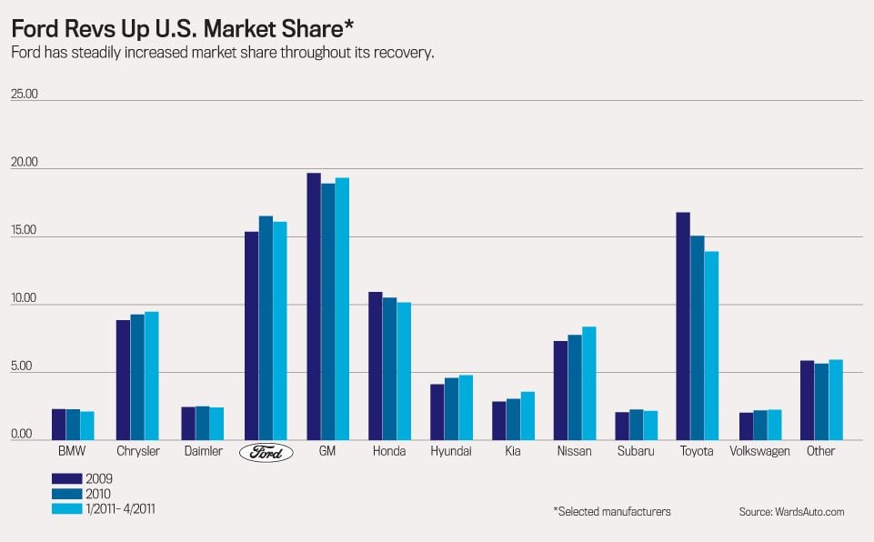 We are moving from saving and transforming the company into an era where we are now growing the business worldwide. The future has been established by the big decisions that we have taken to refocus and transform Ford. The important, big decision was to focus on the Ford brand and focus on a complete family of vehicles made available all around the world, where every vehicle is best in class in terms of quality, value, fuel efficiency, safety and smart design, like Sync and MyFord. Going forward, we are well-positioned in most of the markets around the world. So the real key now is to stay absolutely laser-focused on this.