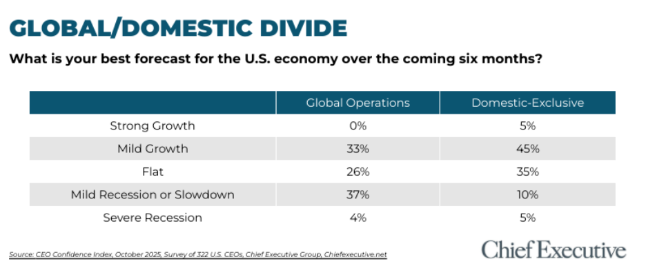 After consecutive declines in August and September, confidence among manufacturing CEOs has rebounded in October, supported by strong order backlogs and renewed business development. At the same time, leaders continue to report the organizational drag of geopolitical and macroeconomic volatility.